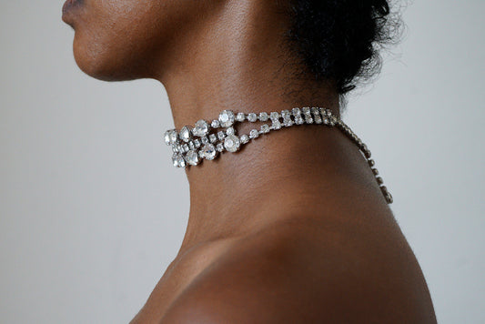 Vintage Rhinestone Bracelet - Embedded Teardrop Stones