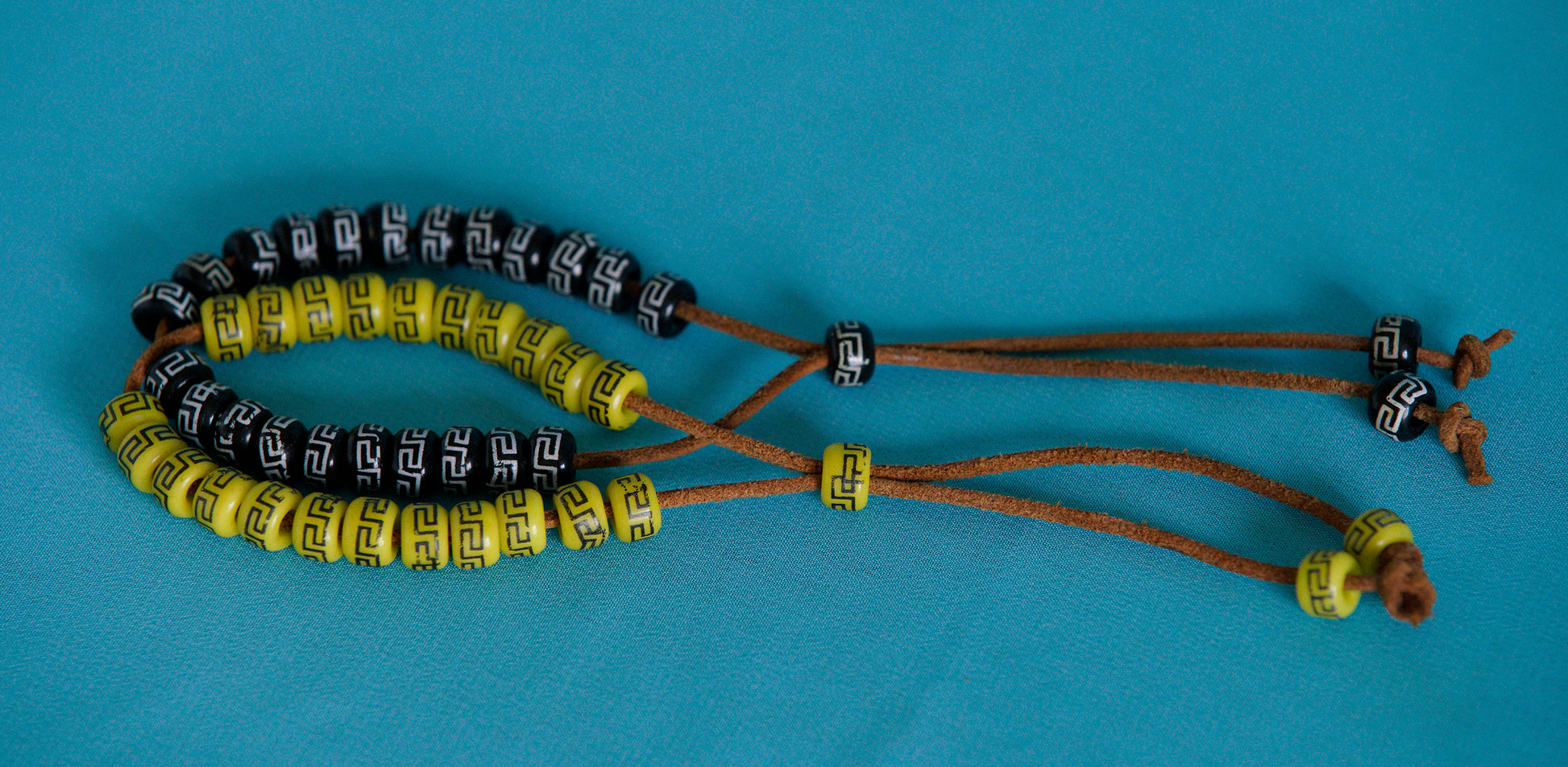 Vintage Adjustable Beaded Bracelet on Leather Chord.