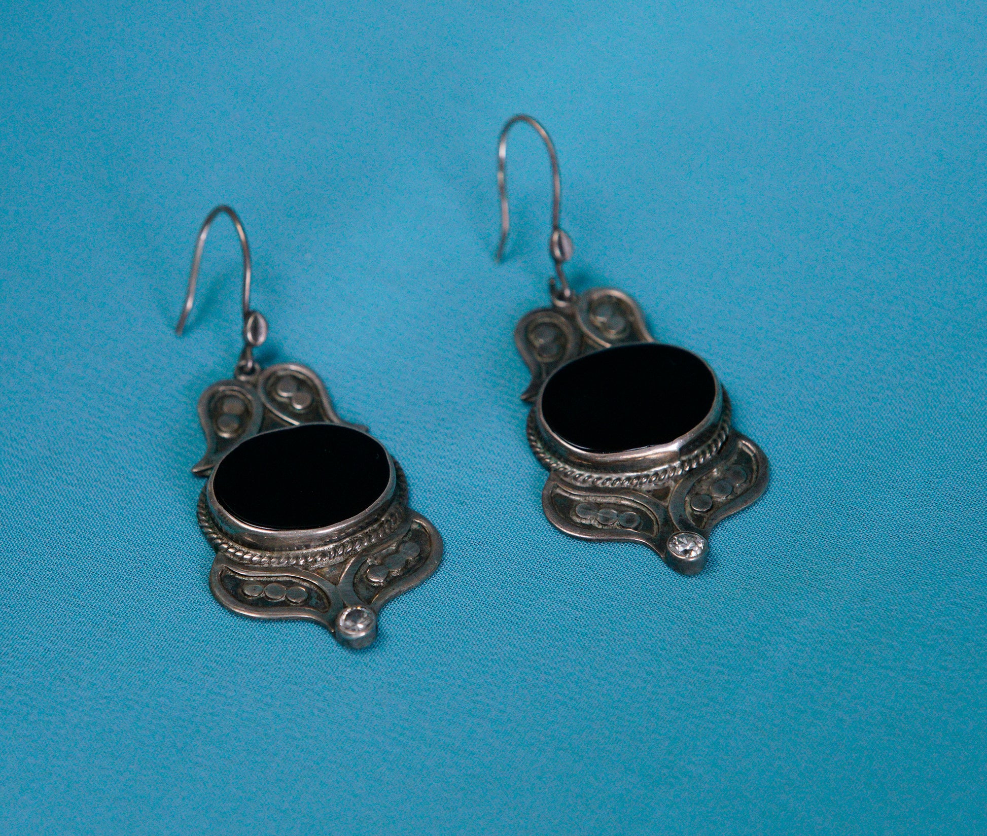 Vintage Obsidian & Silver Earrings